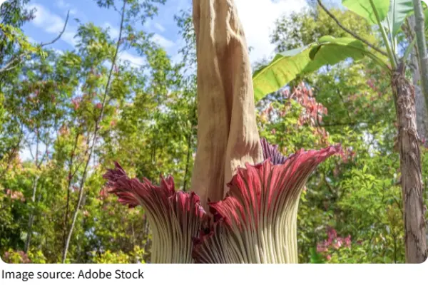 What makes the corpse flower particularly interesting is its ability to produce heat, a mechanism it uses to help disperse its scent over a larger area, ensuring that pollinators like carrion beetles can find it. It's an excellent example of how plants can adapt to dark, shaded environments with unique features.