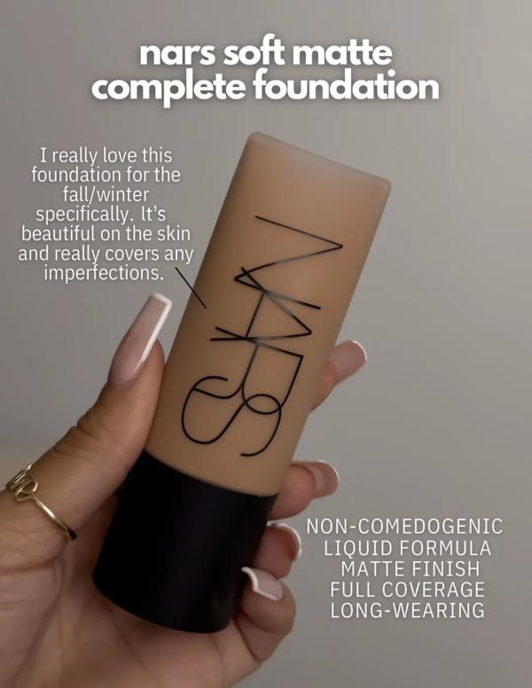 Perfect for fall and winter, this foundation offers full coverage while keeping skin looking naturally matte. It effectively conceals imperfections and stays put throughout the day.
