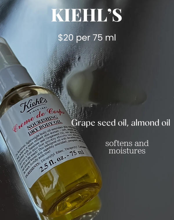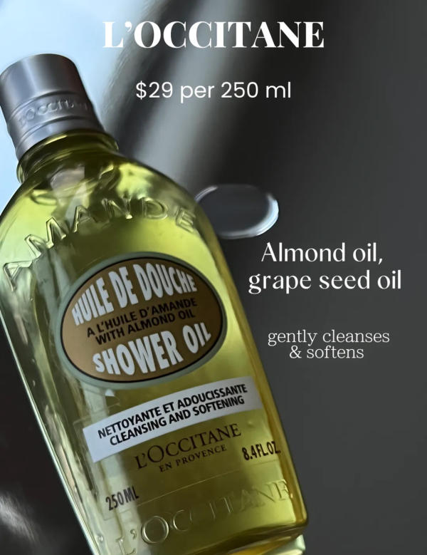 Enriched with almond and grape seed oils, this body oil gently softens and nourishes the skin. I love using it during my “everything shower” routine for an indulgent, spa-like experience.